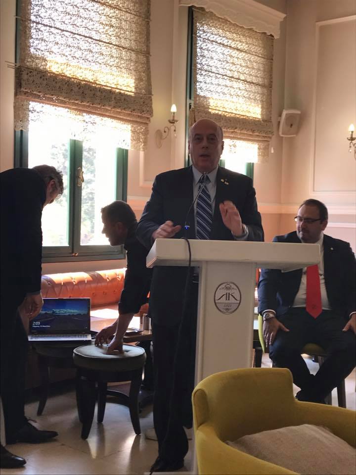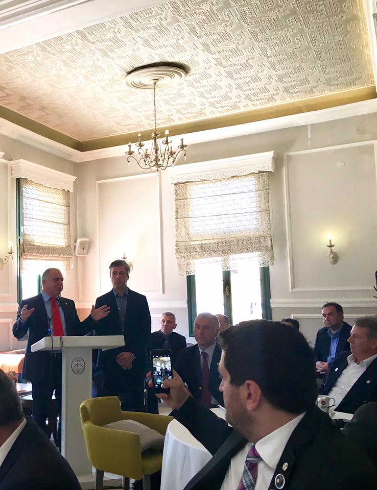 Παρών και ο Νίκος Παπαδόπουλος ανώτατος κυβερνήτης στην Ευρώπη, ο οποίος στάθηκε στην αγάπη του για τους Ahepans. «Η φόρμουλα των Ahepans είναι η συνεργασία και η αγάπη γι’ αυτό που κάνουμε. Είμαι μετανάστης από το 1957. Οι Έλληνες της Αμερικής πέρασαν δύσκολους καιρούς σε ΗΠΑ και Καναδά. Εμείς και οι Κινέζοι φτιάξαμε τους σιδηρόδρομους της Αμερικής. Τόσα χρόνια έχουν φτιαχτεί πάρα πολλές οργανώσεις, παρόμοιες με την ΑΧΕΠΑ. Όμως, οι μόνοι που έχουμε μείνει είμαστε εμείς. Είμαι περήφανο μέλος, από το 1986. Αγαπάω την οργάνωση, είναι η δεύτερη ζωή μου», είπε.