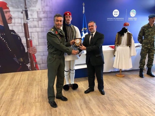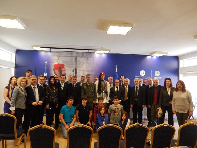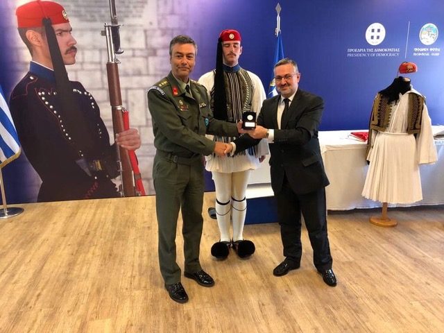Ο κ. Διοικητής επεφύλαξε στα μέλη και στους οικείους του Τμήματος, τη ξεχωριστή τιμή, να γίνει επιτόπια ένδυση τσολιά και παράλληλη επεξήγηση της παραδοσιακής ορολογίας των μερών της επίσημης ευζωνικής στολής. Μετά το πέρας της προβολής και της ένδυσης του εύζωνα, ο Συνταγματάρχης – Διοικητής κ. Δημητρόγλου, απάντησε σε ερωτήσεις και απορίες των μελών και των οικείων τους. Τέλος ο Πρόεδρος του Τμήματος AHEPA HJ – 17 κ. Παναγιώτης Ριζόπουλος, απένειμε στο Διοικητή της Προεδρικής Φρουράς, τιμητική πλακέτα και ο κ. Δημητρόγλου του επέδωσε αναμνηστικό σήμα με το έμβλημα της Π.Φ.